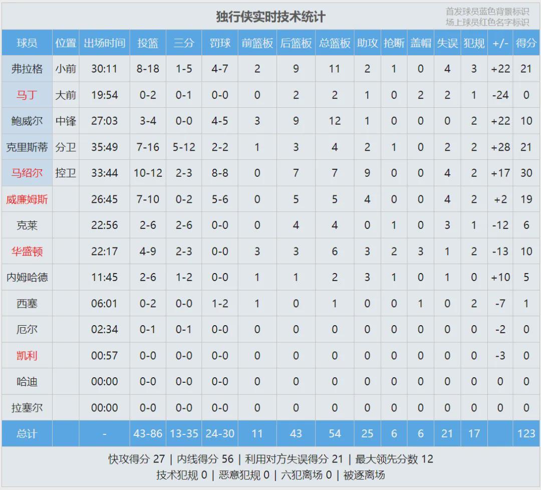 北京时间1月23日,独行侠主场123-115战胜勇士。库明加出战9分28秒,3投3中,罚球4中4,得到10分1板2助2断,正负值+18。上半场还剩4分28秒,库明加在上篮时崴脚受伤退出比赛。巴特勒已经赛季报销,如今库明加也伤了。